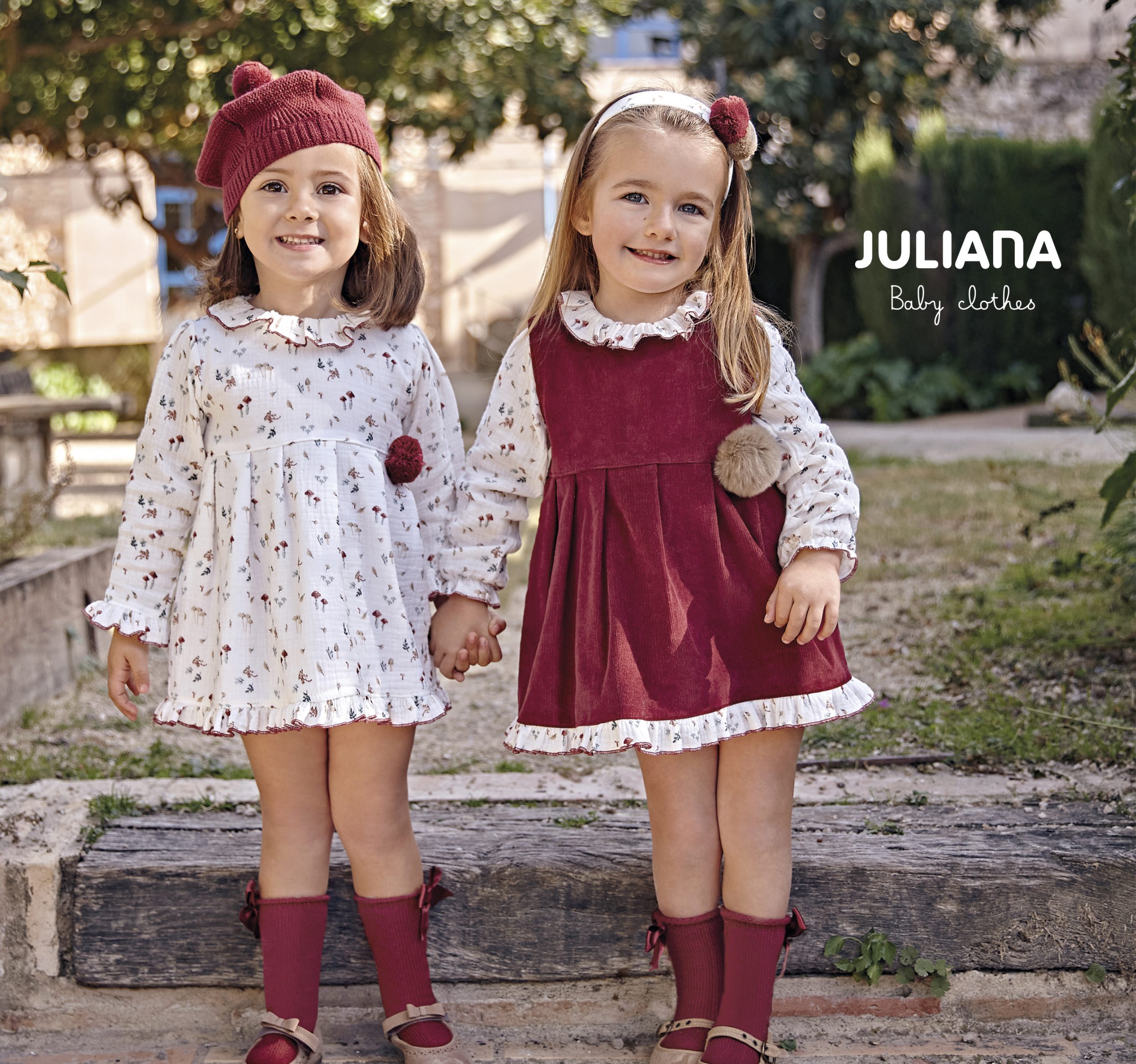 Juliana Baby Clothes es la marca de ropa infantil de vistiendo bebés, empresa dedicada a la fabricación de ropa para bebé y ropa para niños desde 1970. Prendas fabricadas en España que visten desde el recién nacido hasta niños de 4 años. La moda infantil de Juliana Baby Clothes ofrece cada temporada nuevas colecciones pensadas para vestir a los más pequeños en cada momento. La alta calidad de su confección y los tejidos utilizados, hacen de sus productos la mejor opción para los más pequeños de la casa. Juliana Baby Clothes es un fabricante que utiliza tejidos naturales antialérgicos, de tacto muy suave, delicado y dulce, para que tu bebé se sienta muy cómodo. Trabajamos todo el catálogo de productos de la marca, si no encuentra alguna talla o modelo, pregúntanos. DISPONIBLE NUEVA COLECCIÓN. TEMPORADAS ANTERIORES CON GRANDES DESCUENTOS DE HASTA -50%