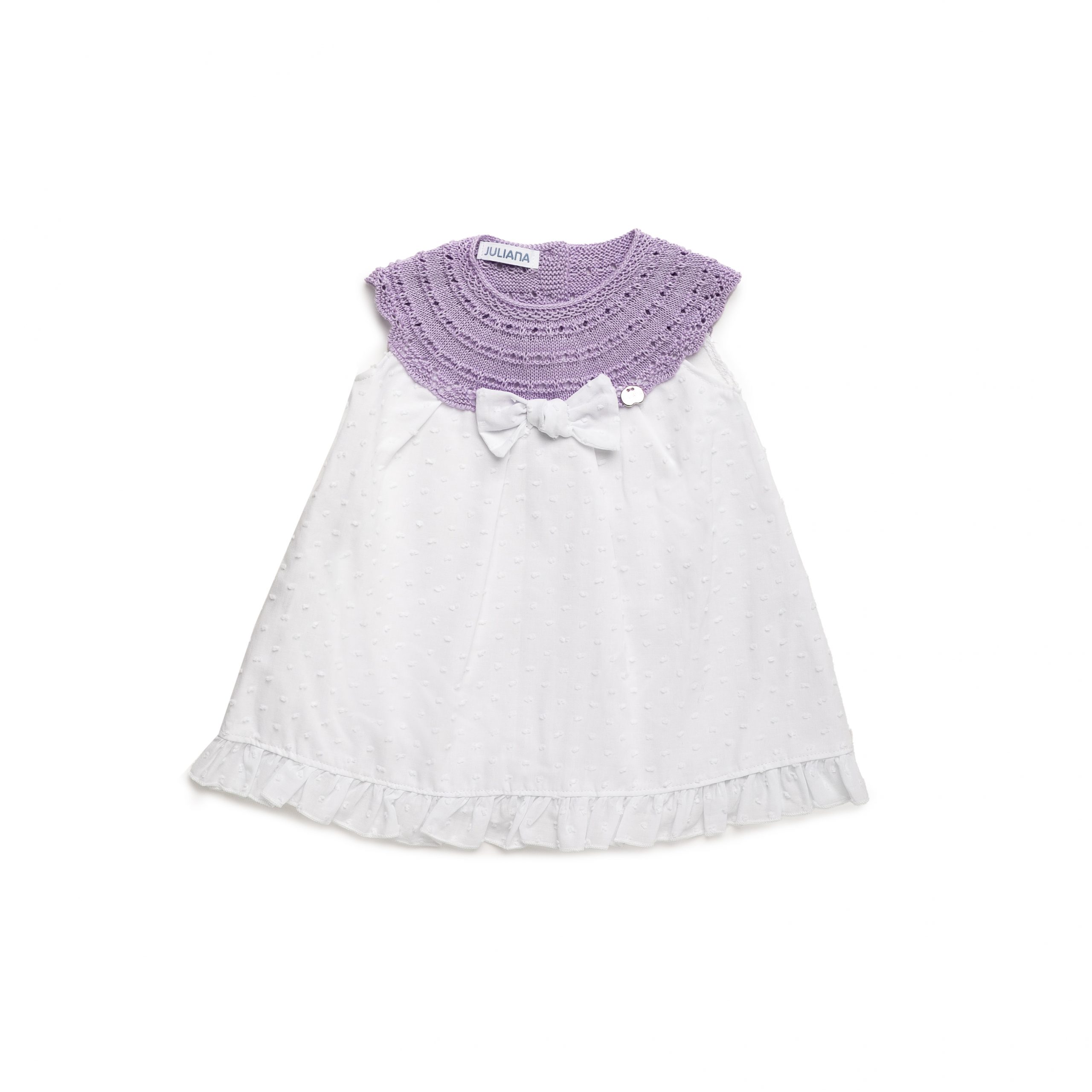 Sencillo, pero precioso Vestido confeccionado en tejido 100% Algodón blanco de plumeti. Lleva el cuerpo de punto en color rosa maquillaje o lila a juego. Vestido de Juliana Baby clothes.